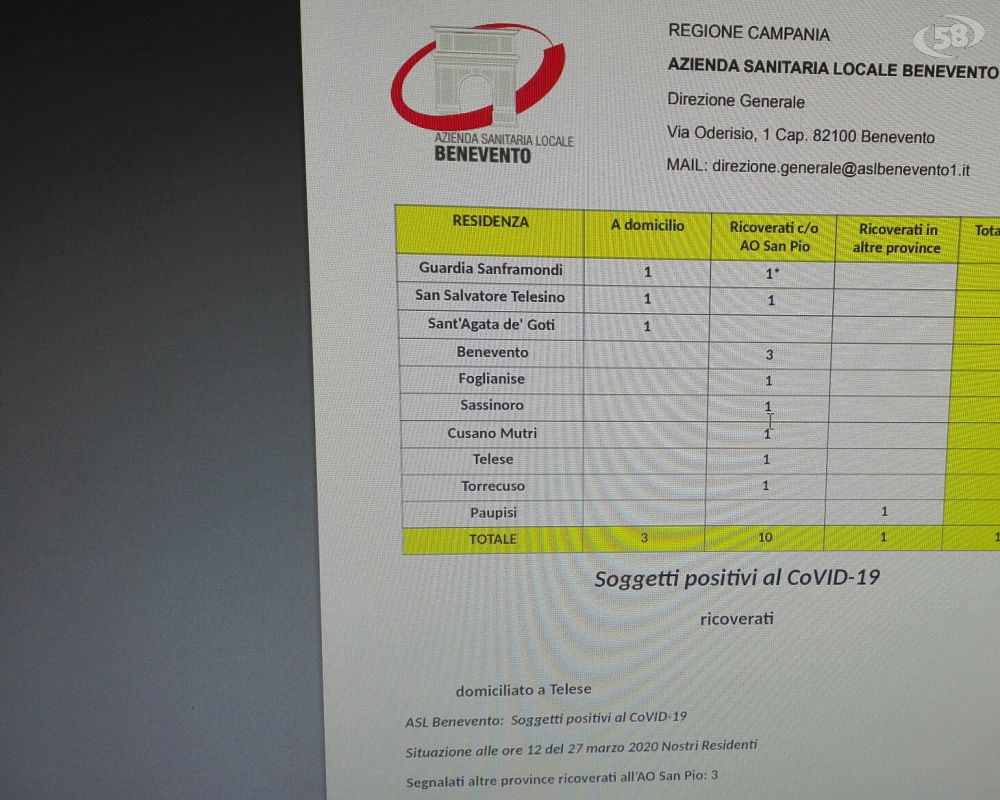 14 i casi nel Sannio (13 ricoverati, 1 al proprio domicilio).