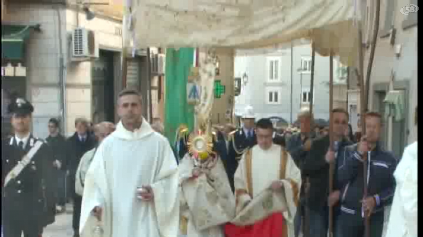 La solennità del Corpus Domini. Folta partecipazione di fedeli nella Basilica Cattedrale ad Ariano Irpino, durante l’adorazione eucaristica, una preghiera globale, che quest’anno ha coinvolto in contemporanea cattedrali e parrocchie delle diocesi di tutto il mondo.