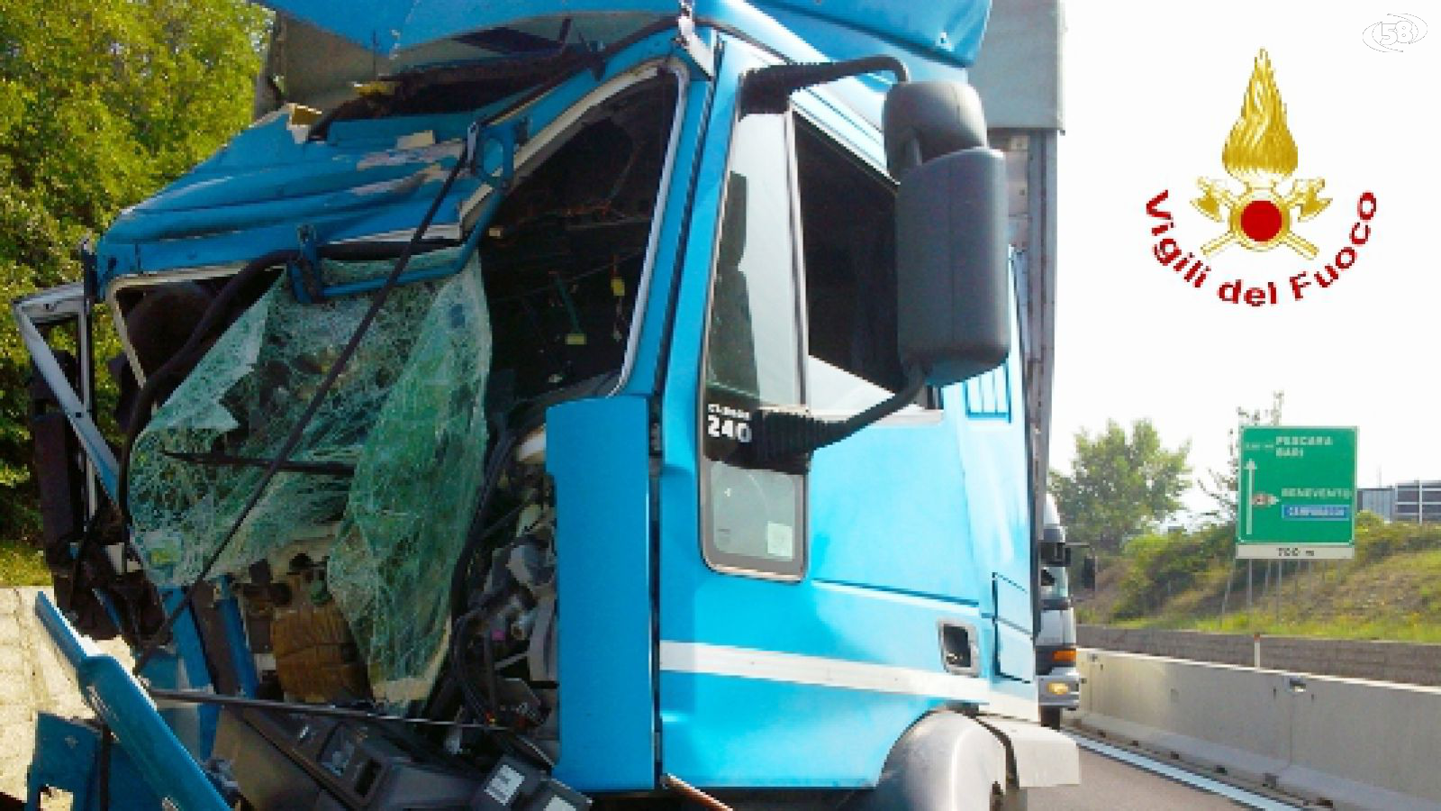 Questa mattina, i vigili del fuoco del distaccamento di Grottaminarda sono intervenuti sull'Autostrada A 16 Napoli- Bari, al Km. 76, subito dopo l'uscita del casello autostradale di Benevento, per un incidente stradale tra un autocarro ed un autoarticolato. I due veicoli che trasportavano entrambi materiale ferroso, viaggiavano in direzione Napoli e sono venuti in collisione. Il primo intervento è stato effettuato da un vigile del fuoco libero dal servizio, in transito in quel momento, il quale ha prestato i primi soccorsi ai due conducenti, che sono stati consegnati alle cure dei sanitari del 118 che ne disponevano il ricovero presso l'ospedale Moscati di Avellino per accertamenti. I vigili del fuoco hanno messo in sicurezza gli automezzi coinvolti e l'area interessata, consentendo il ripristino della circolazione che aveva subito inevitabili rallentamenti.