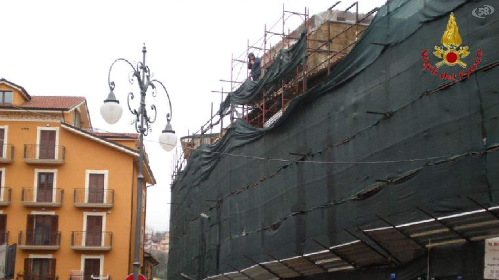 Sul posto due squadre di Vigili del Fuoco hanno montato il telo di salvataggio.