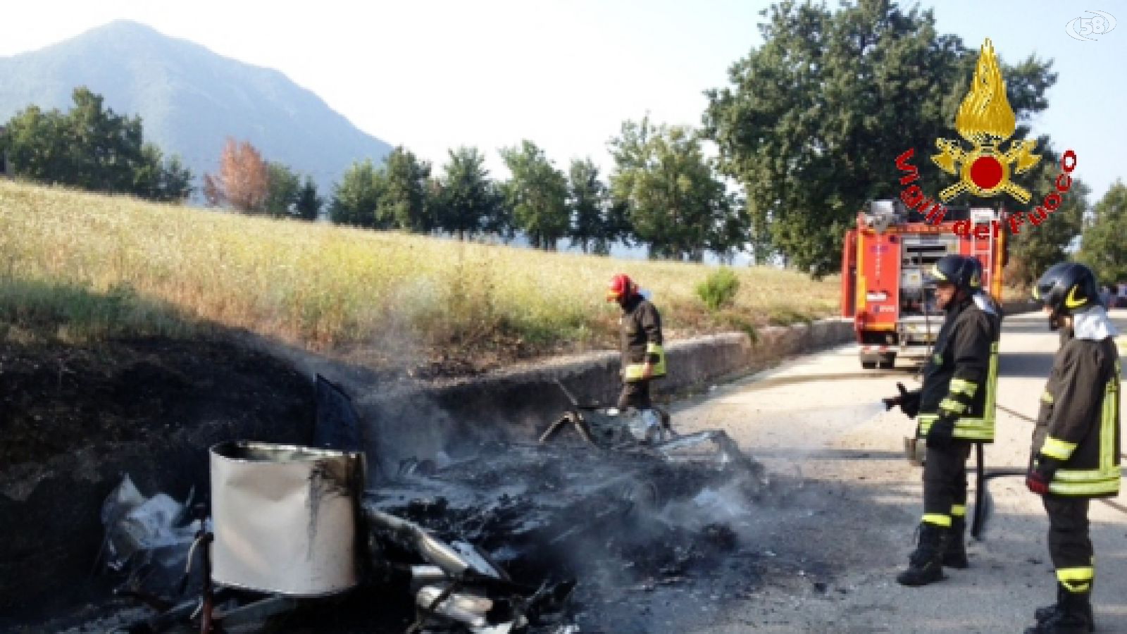 Alle ore 08.36, la squadra dei Vigili del Fuoco del distaccamento di Montella, è dovuta intervenire nel comune di Nusco, sulla strada Provinciale 58, per un incendio che interessava una roulotte parcheggiata lungo la strada. Si è provveduto allo spegnimento e alla bonifica dell'area interessata dall'incendio.