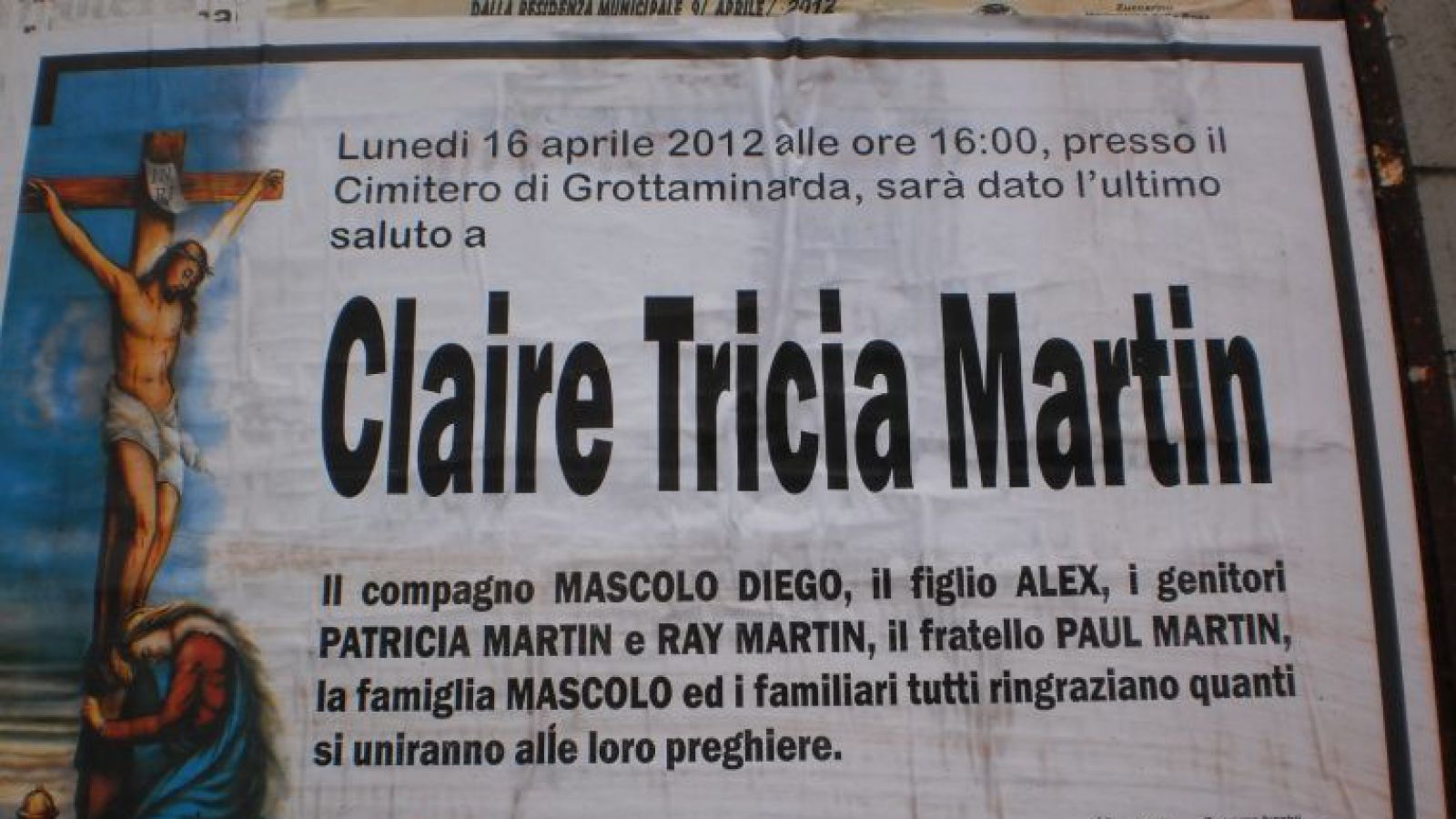 “Se la Procura ha rilasciato la salma, significa che sta propendendo per la chiusura del caso come gesto autolesionista.” Parla per la prima volta l’avvocato Carlo Mustone il legale di famiglia, che ha seguito in questi giorni con grande riservatezza il caso Claire, evitando commenti e dichiarazioni affrettate sull’intera vicenda. La salma della sfortunata donna inglese è stata liberata. La Procura ha concesso il nulla osta. Lunedì lascerà l'obitorio dell'ospedale di Ariano Irpino. Alle ore sedici verrà tumulata nel cimitero di Grottaminarda, dove riposerà per sempre. Non saranno celebrati funerali. Questa mattina l’agenzia di onoranze funebri Terrazzano, ha affisso i manifesti di lutto in paese che annunciano l’ultimo saluto a Claire Tricia Martin. L'inchiesta intanto prosegue ma è solo un riordino di documenti e perizie. "Ci sono ipotesi che lasciano pensare al suicidio, ma ancora non parliamo di caso chiuso - ha dichiarato ancora una volta il capo degli inquirenti Luciano D'Emmanuele. Quella del gesto autolesionista però è una tesi prevalente soprattutto in relazione al rinvenimento del coltello di proprietà della donna deceduta.” Non prima di giovedì il medico legale Maurizio Saliva dovrebbe consegnare la sua relazione conclusiva. Ci sarebbero una serie di elementi che avrebbero portato il pool investigativo su questa strada, il coltello prelevato dalla sua abitazione e la mancanza di indizi utili per poter inchiodare un ipotetico assassino. Un suicidio, se di suicidio si tratta, il cui movente, però al momento resta avvolto nel mistero.