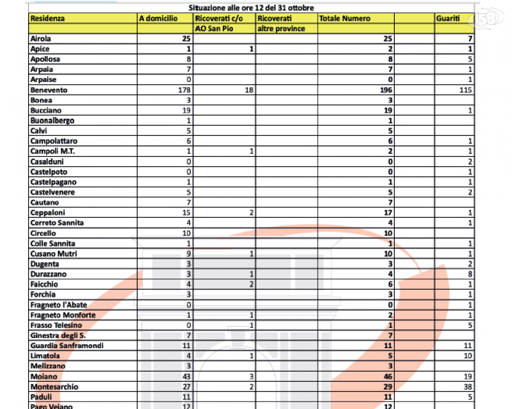 E a Benevento la situazione è sempre più preoccupante: da 10 giungono a 18 i ricoverati. I positivi sfondano quota 196.