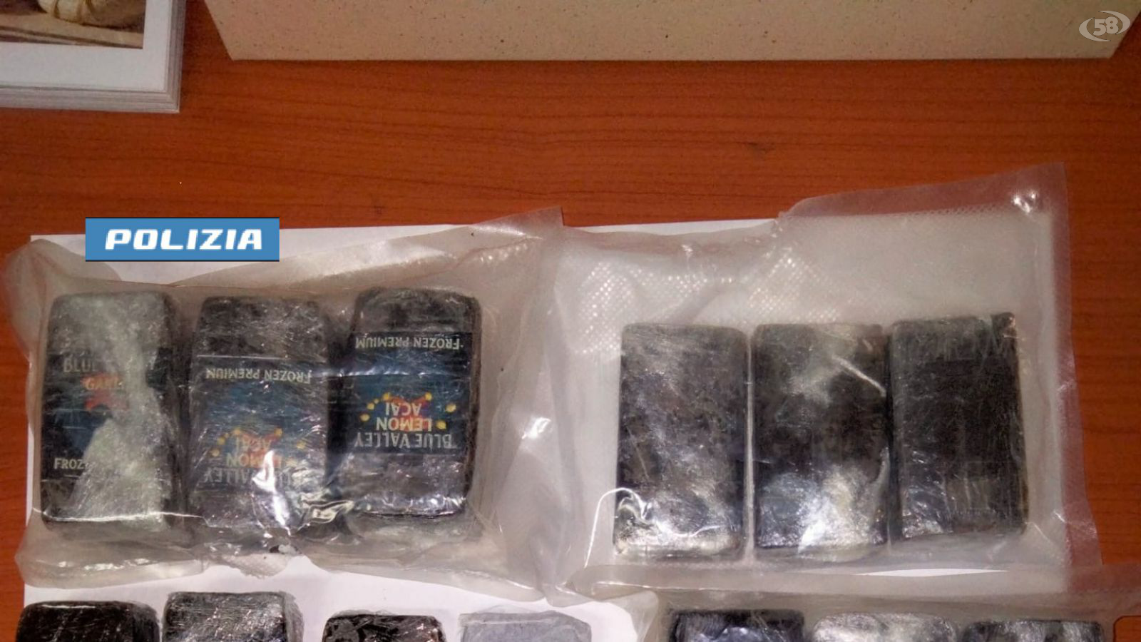 La perquisizione domiciliare ha dato esito positivo: all’interno della camera da letto sono stati rinvenuti e sequestrati 37 panetti di hashish, per un peso complessivo lordo di circa 2 Kg, oltre a un bilancino di precisione ancora sporco della medesima sostanza ed un coltello utilizzato per tagliare le dosi.