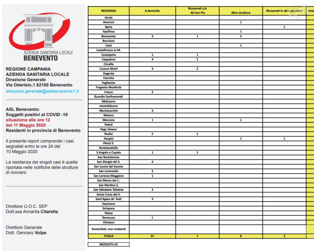 Nel Bollettino dell'Asl di Benevento il quadro completo.