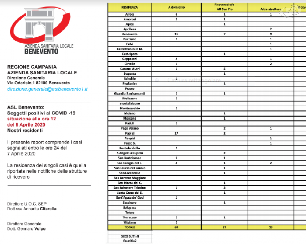 Proprio in questi minuti si è avuta l'ufficialità su nuovi positivi nel Sannio che balzano a 122.