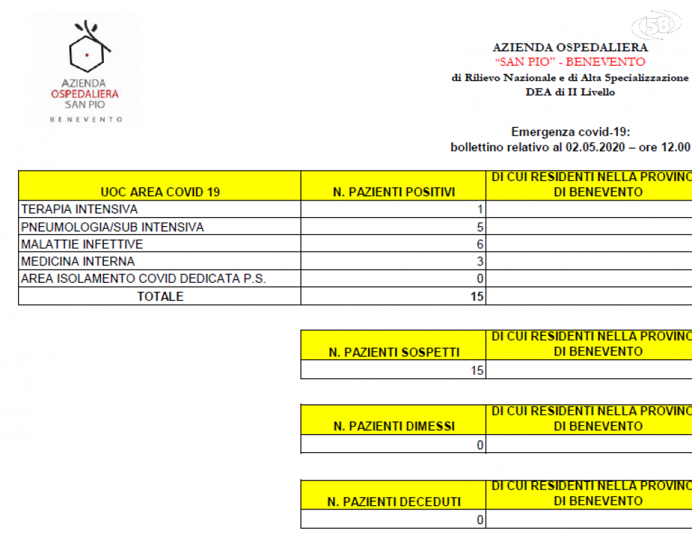 E come da Bollettino fornito dall’azienda ospedaliera San Pio forniamo i dati dei ricoveri presso il nosocomio sannita.