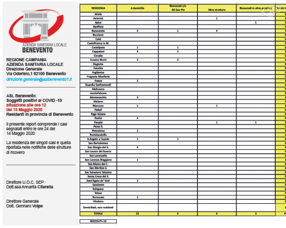 Sono i dati aggiornati del bollettino dell’Asl di Benevento - così come quelli del San Pio con 7 ricoveri, un dato stabile - che fanno guardare con positività al futuro anche se bisogna continuare ad avere senso civico così come hanno dimostrato questa mattina gli agricoltori del Sannio che hanno riaperto in sicurezza proprio questa mattina i mercati di Campagna Amica, grazie all’ordinanza 45 della Regione Campania.