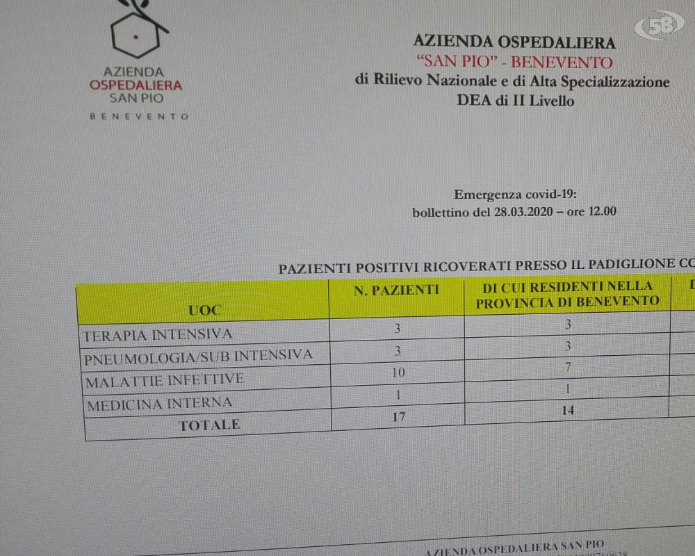 Al nosocomio Rummo, azienda ospedaliera San Pio si trovano sono ricoverati - come da Bollettino - 17 pazienti positivi al Covid19 (14 della provincia di Benevento, 3 di altre province).