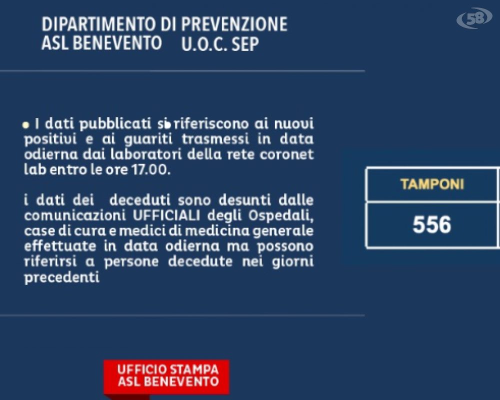 87 nuovi positivi nel Sannio. 56 sono stati comunicati ieri sera dall’Asl di Benevento su 556 tamponi (con 28 sintomatici) e altri 31 sanniti dai laboratori del San Pio su 475 tamponi.