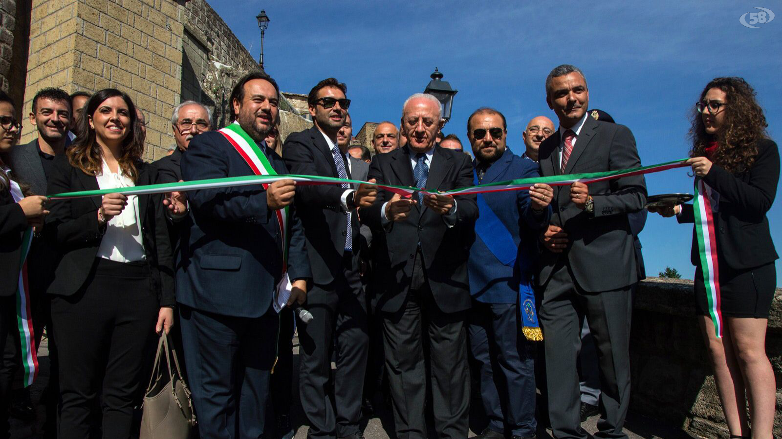 Dopo aver firmato il libro degli ospiti d'onore della Città nella suggestiva cornice dell'Aula Consiliare di Palazzo San Francesco, De Luca ha percorso a piedi accompagnato dai rappresentanti istituzionali e dai cittadini il borgo storico di Sant'Agata de' Goti fino a via Reullo per il taglio del nastro e la benedizione dell'opera.