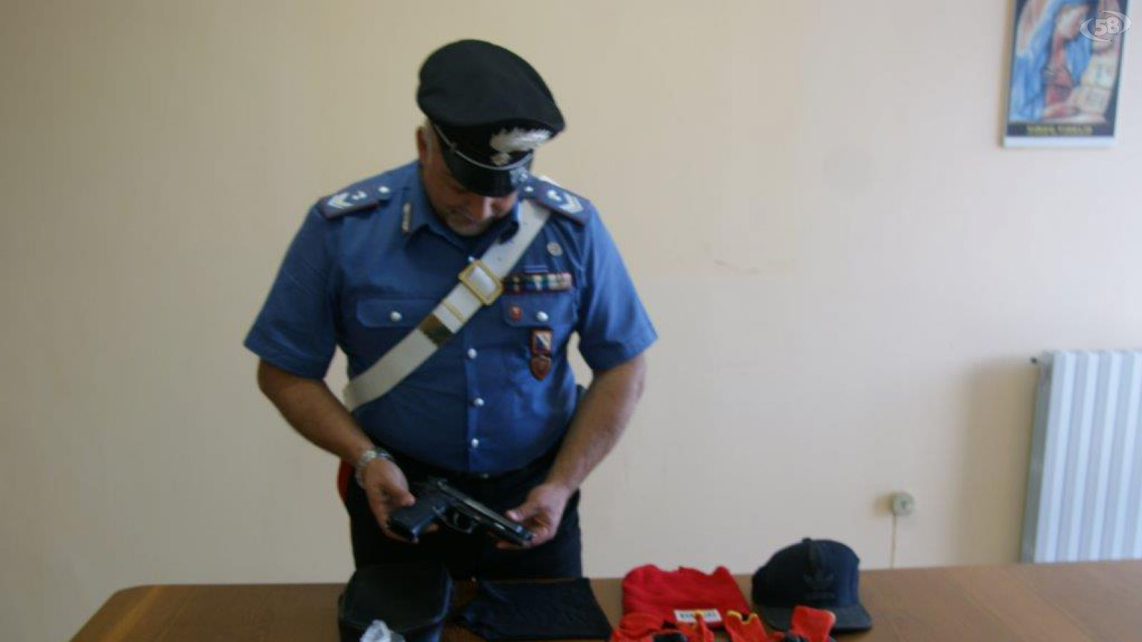 Sottoposti a perquisizione personale i carabinieri li hanno trovati in possesso di una pistola beretta 9x21 con matricola abrasa e un caricatore con 12 colpi, due passamontagna e 8.350 euro in banconote di vario taglio.