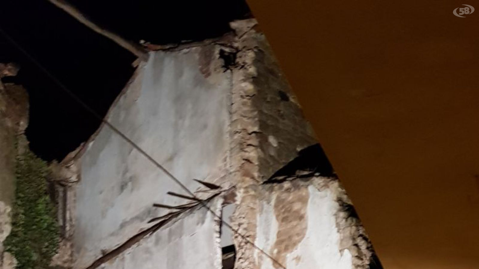 Il crollo ha interessato una porzione dell'abitazione fatiscente composta da due piani e, per fortuna, disabitata.