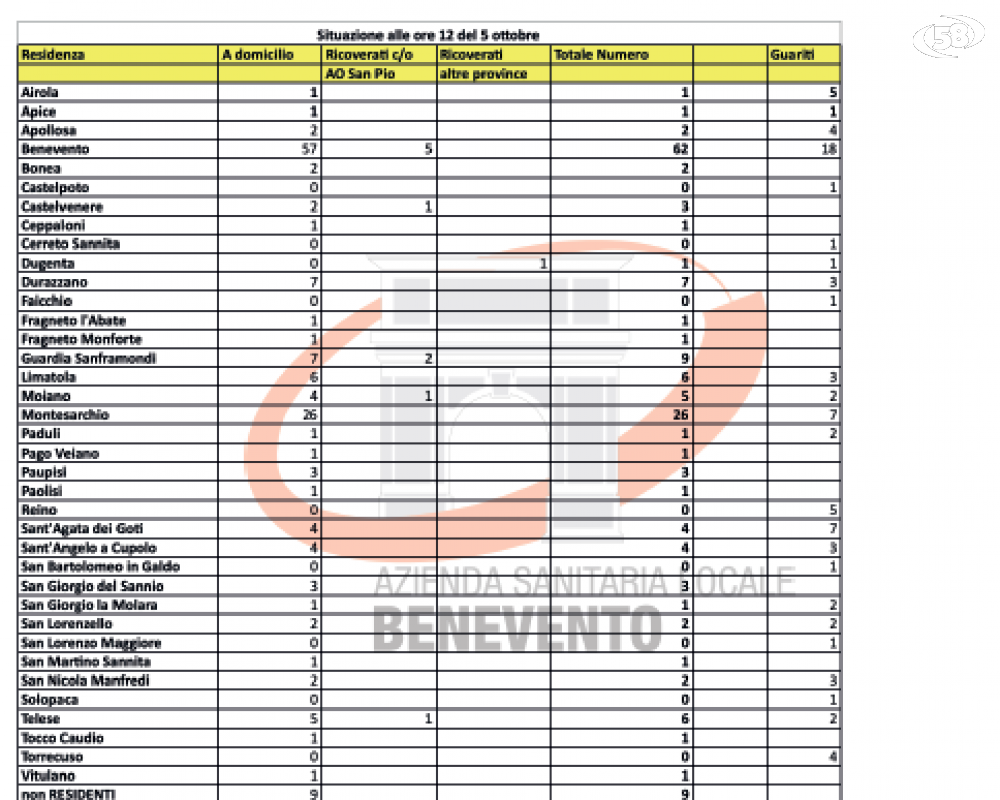 Ci sono per fortuna buone nuove che si evincono dal report dell'Asl di questo pomeriggio: i casi Covid si attestano a 168. Scendono a 10 i ricoveri dei sanniti al San Pio. Un residente di Limatola si trova in un ospedale fuori provincia.