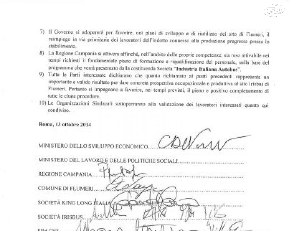 Irisbus, è il giorno dell'incontro al Ministero dello sviluppo tra King Long, Fiat, Governo e parti sociali. Presente anche Confindustria di Avellino. Al Mise è stato stilato il verbale d'accordo. Domani Fiat apre le procedure di mobilità per poi ritirarle. Sarebbe un passaggio dovuto. Si oppone la Fiom Cgil. Martedì 21 ottobre alle ore 10 si terrà un'assemblea Irisbus presso il ristorante Porto Bello di Flumeri