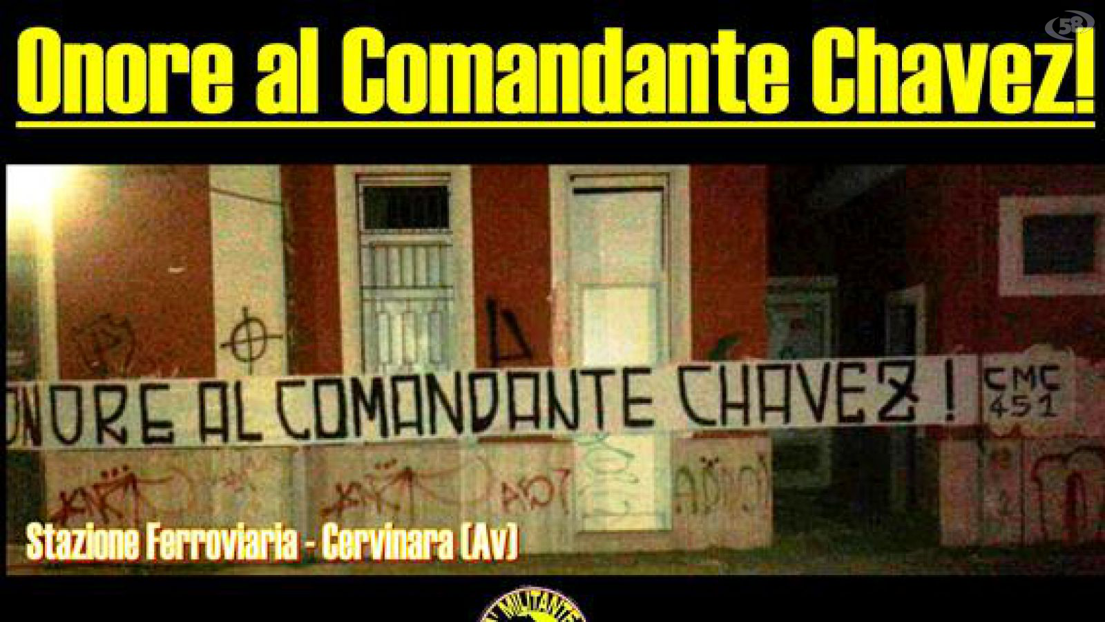 La Comunità Militante Caudina 451 ha onorato la memoria del Comandante venezuelano Hugo Chavez, esponendo un enorme striscione presso la Stazione Ferroviaria di Cervinara. "Onore al Comandate Chavez" è il testo srotolato nella notte di ieri sulla linea Napoli - Benevento. "Un atto spontaneo, nato per ricordare la figura del presidente venezuelano - dichiarano i militanti caudini- che ha lottato fino alla fine contro lo strapotere capitalista in America Latina". La figura del rivoluzionario, appena scomparso, ha colpito i ragazzi della Cmc451: "Chavez ha incarnato l'etica popolare, la sua azione socialista ha superato nel concreto l'utopia marxista, creando un nuovo socialismo all'avanguardia, legato indissolubilmente alla Patria e alla sua Tradizione. In Italia le sue gesta sono state travisate dalla stampa di regime, al soldo dei potenti. Noi l'abbiamo voluto ricordare, soprattutto, come esponente delle lotta sociale alla globalizzazione, figlia della speculazione delle banche sui cittadini di ogni angolo del pianeta. La sovranità nazionale riconquistata in tutti i campi, la difesa totale dell'ambiente, la repressione verso la malavita, l'inconfutabile azione diretta popolare sui salari, sulla qualità del lavoro e sulla sanità pubblica - chiude il direttivo della Cmc451- sono alcuni esempi che dovrebbero far riflettere la nostra classe politica, oggi più che mai televisiva e rimbambita dalle elezioni. Hugo Chavez ha lottato per la sua gente. Ai funerali c'erano milioni di venezuelani a rendergli omaggio, una testimonianza dell'amore e del rispetto per chi ha dato la vita per un ideale."