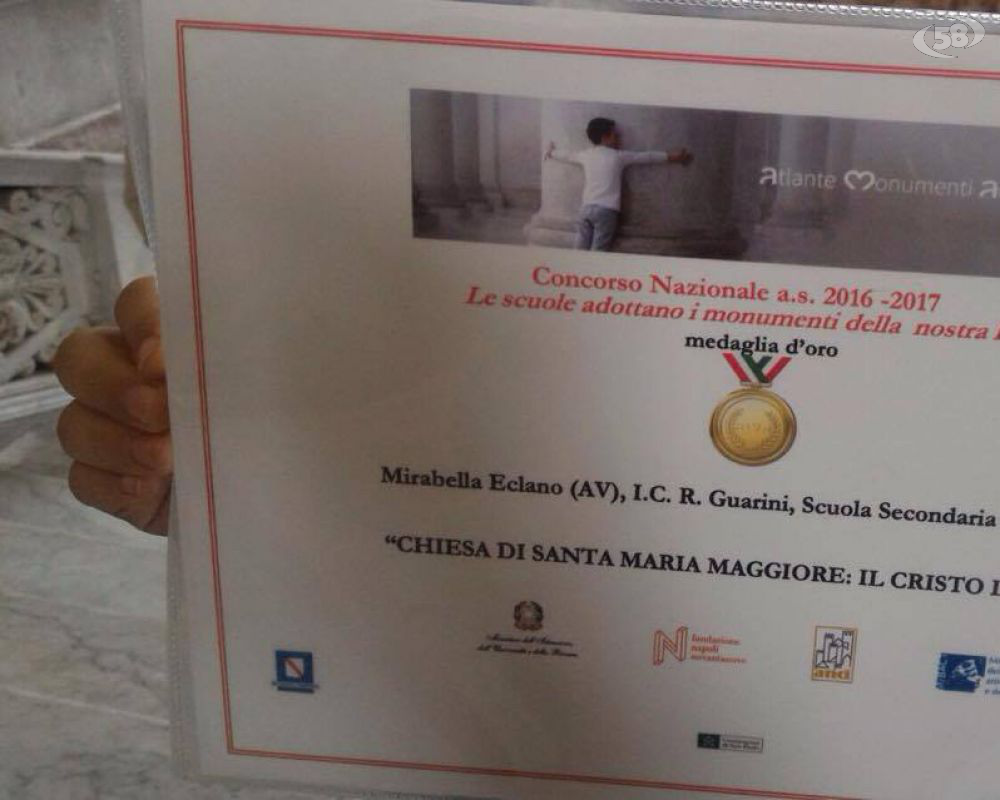 Ai ragazzi, coinvolti nel progetto dalla professoressa Angela Cosato, è andata una simbolica medaglia d'oro. Gli alunni hanno adottato lo storico crocifisso ligneo di stile normanno, risalente al 12 secolo, collocato nella chiesa Santa Maria Maggiore di Mirabella. Sul monumento hanno inoltre prodotto un dvd di tre minuti, realizzato parte in aula e parte presso la chiesa.