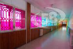 Gli interventi di quest'anno scolastico che hanno impegnato gli allievi della sezione carceraria del Liceo Artistico di Ariano Irpino, si sono concentrati ancora nella zona adibita a scuola con la riproduzione dell'opera di Magritte ''La Fortuna", e poi ci siamo concentrati soprattutto sulla riqualificazione dell'ingresso delle vecchie sezioni, il lavoro si è sviluppato lungo un corridoio che i ragazzi attraversano spesso, in particolare su delle vetrate su cui abbiamo riportato i colori dell'Arcobaleno, su due pareti abbiamo riprodotto un opera di Herbin "Mezzogiorno" e un intervento anche sulla pavimentazione dove sono state divise le piastrelle per colore.