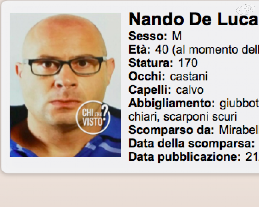 La scomparsa dell'uomo, 40 anni di Mirabella Eclano, era stata segnalata anche da ''Chi L'ha Visto''.