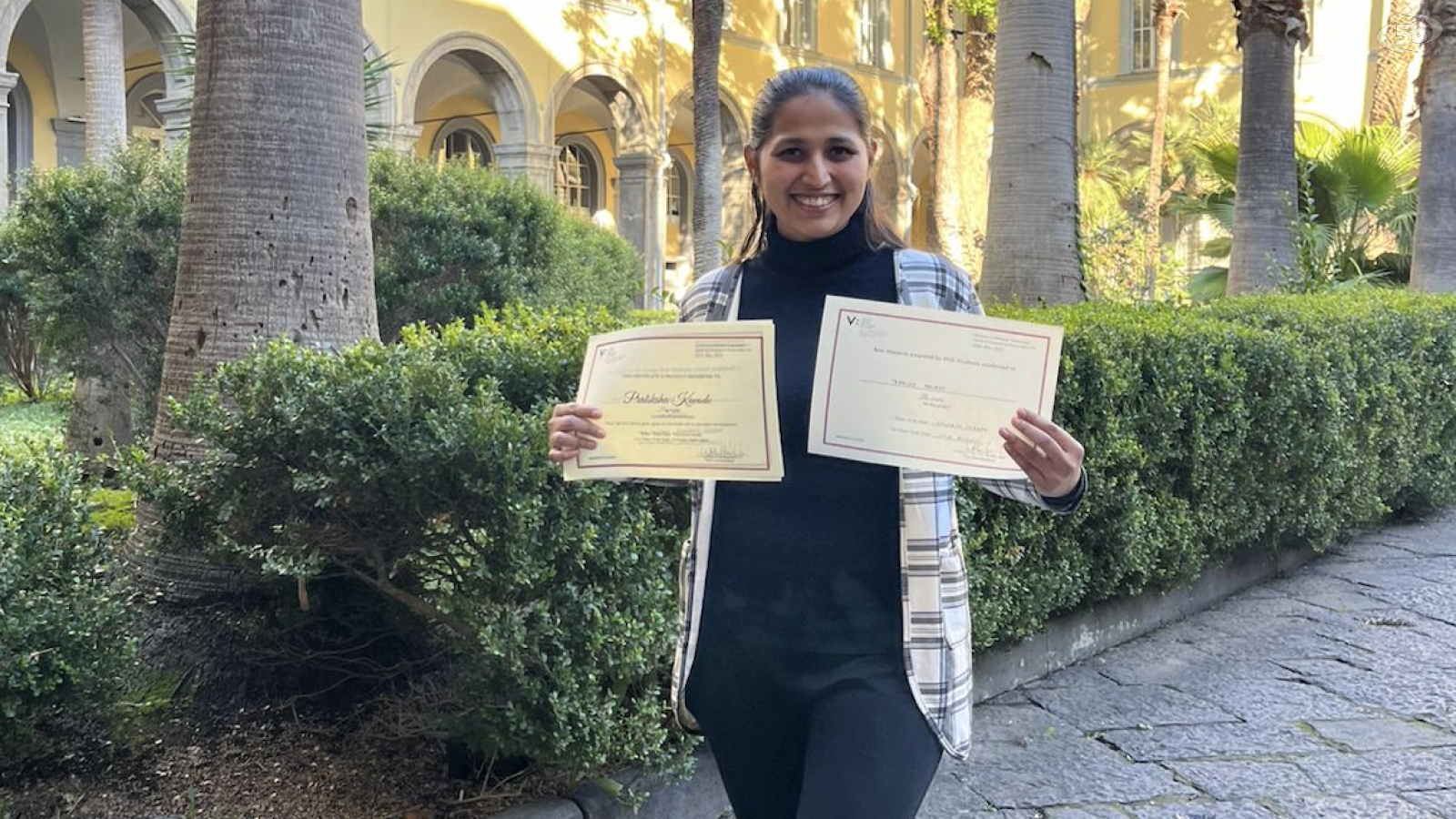 La dottoressa indiana Pratiksha Kavade è stata selezionata per la presentazione orale del suo progetto di dottorato in Medicina Traslazionale e, a seguito della presentazione, ha ricevuto sia il premio per la migliore ricerca riservato ai dottorandi stranieri, deciso dalla commissione docente esaminatrice, sia quello assegnato direttamente dai colleghi dottorandi del corso di Medicina Traslazionale dell’Università Vanvitelli. La consegna di tali riconoscimenti è avvenuta il 17 dicembre, presso la sede dell’Ateneo, a Napoli, nel corso del PhD Day, momento di confronto e condivisione di conoscenze ed esperienze tra dottorandi.Il progetto di ricerca premiato mira a scoprire, in particolare, i meccanismi molecolari attraverso i quali il gene CBX2 influenza l’organogenesi in zebrafish, un piccolo pesce d’acqua dolce, che è un ottimo modello per tali studi. Attraverso l’inattivazione del trascritto di CBX2, la dottoressa Kavade ha potuto dimostrare in vivo come un regolatore epigenetico chiave quale CBX2 governa specificamente l’espressione genica durante le prime fasi dello sviluppo. Le applicazioni di questo lavoro, realizzato all’interno del laboratorio di Epigenetica di Biogem, diretto dai professori Lucia Altucci e Vincenzo Carafa, si annunciano di grande portata. In ballo ci sarebbero, infatti, un avanzamento delle conoscenze in biologia dello sviluppo e la messa in luce di disturbi congeniti legati a disfunzioni del gene CBX2. <<Più in generale – sottolinea la professoressa Altucci – questo studio potrebbe consentirci di ampliare la comprensione dei meccanismi di regolazione epigenetica del nostro corpo, in condizioni sia di buona salute sia di malattia>>.Pratiksha Kavade, da oltre due anni quotidianamente impegnata nei laboratori di Biogem, ha avuto il supporto scientifico della professoressa Concetta Ambrosino, responsabile dell’area di ricerca Modelli Animali e Cellulari Geneticamente Modificati, e del personale dell’area che coordina. Un apporto fondamentale che conferma la valenza ‘corale’ dei principali studi realizzati nel centro di ricerca arianese, sempre più attrattore di cervelli provenienti da ogni angolo del mondo.