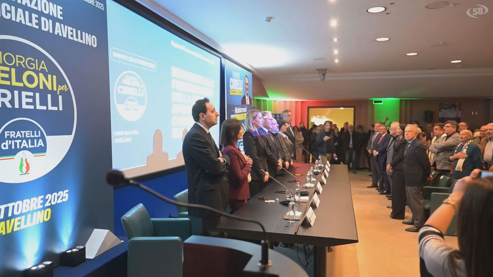 “Ad Avellino c’è voglia di riscatto, avremo una vittoria larga”. Edmondo Cirielli in Irpinia per presentare la lista di Fratelli d'Italia che lo appoggia alla corsa a Palazzo Santa Lucia. All'hotel De La Ville, il candidato di centrodestra lancia la sfida.