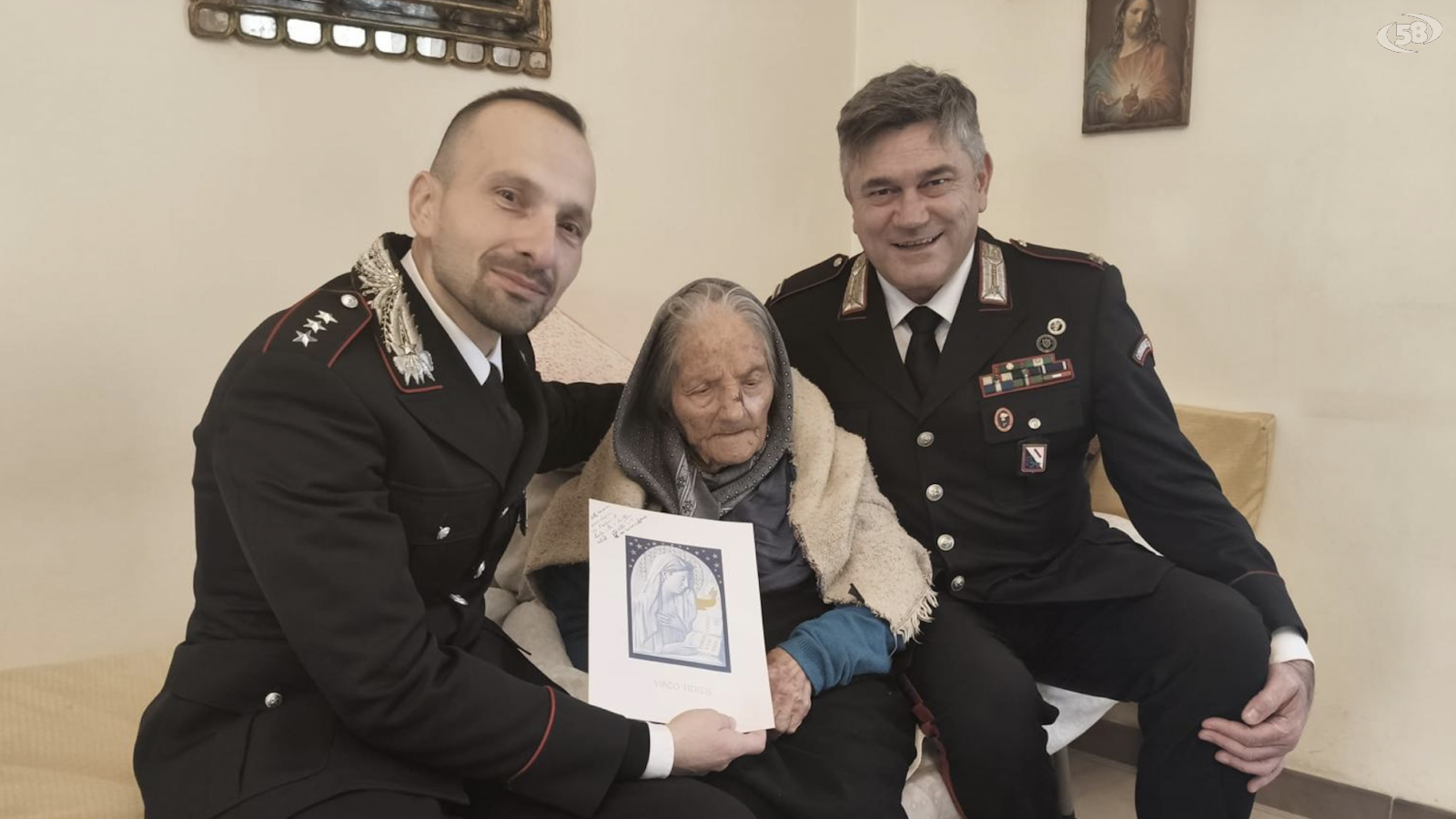 Una coincidenza che non poteva passare inosservata, tanto che per festeggiare l’ultracentenaria di Sturno i Carabinieri della Compagnia di Mirabella Eclano hanno voluto regalarle proprio l’immagine della loro patrona.