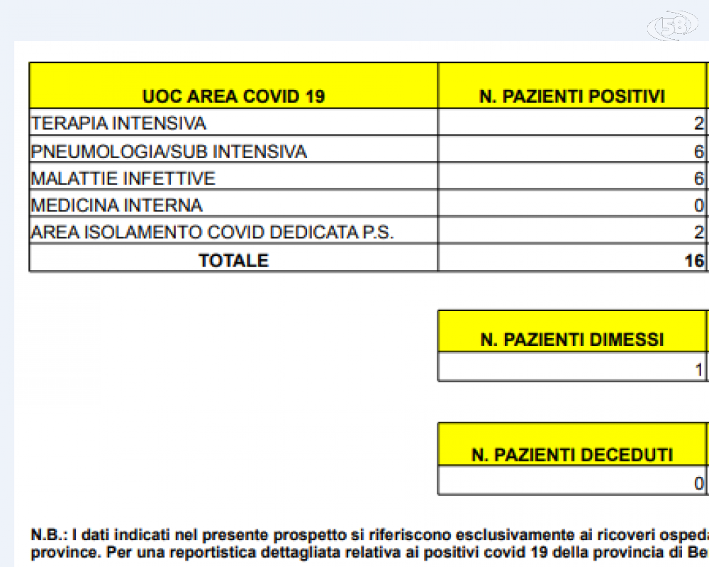 Intanto i ricoveri Al San Pio nel giro di poche ore sono aumentati. Nonostante una dimissione. Da 14 i pazienti salgono a 16. 9 sono sanniti.