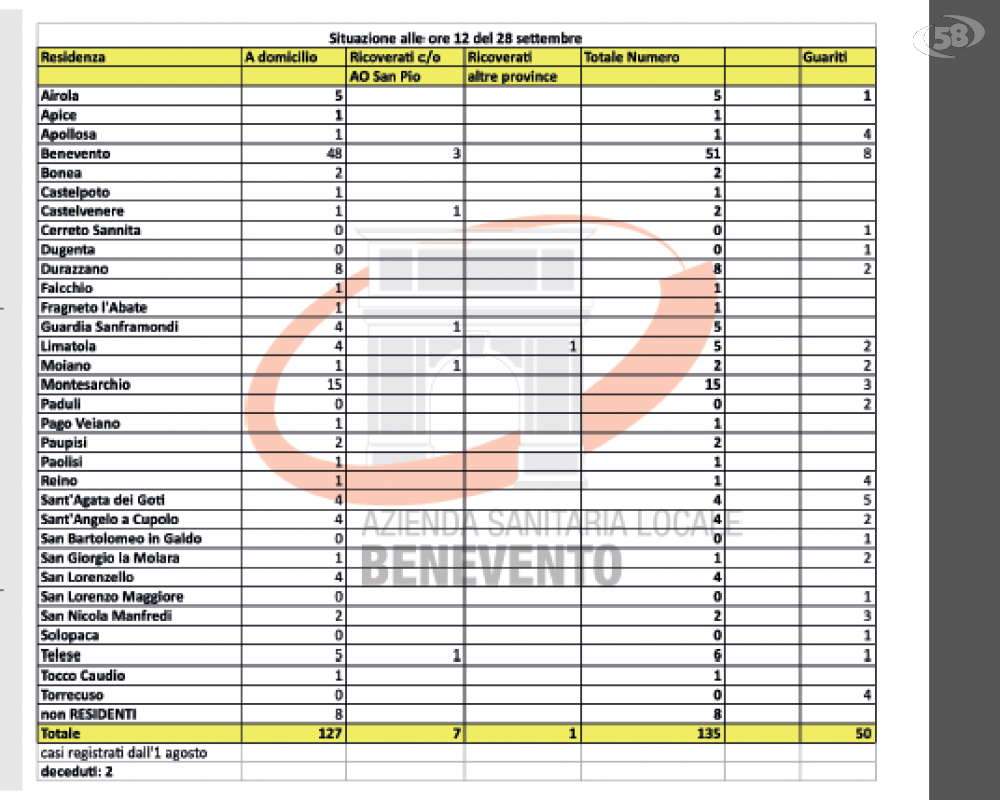 Altri 5 positivi nel Sannio, come da report censito dall’Asl di Benevento.