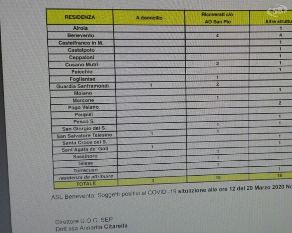 26 pazienti ricoverati presso l'ospedale Rummo: 21 sono della provincia di Benevento; 5 da altre province.