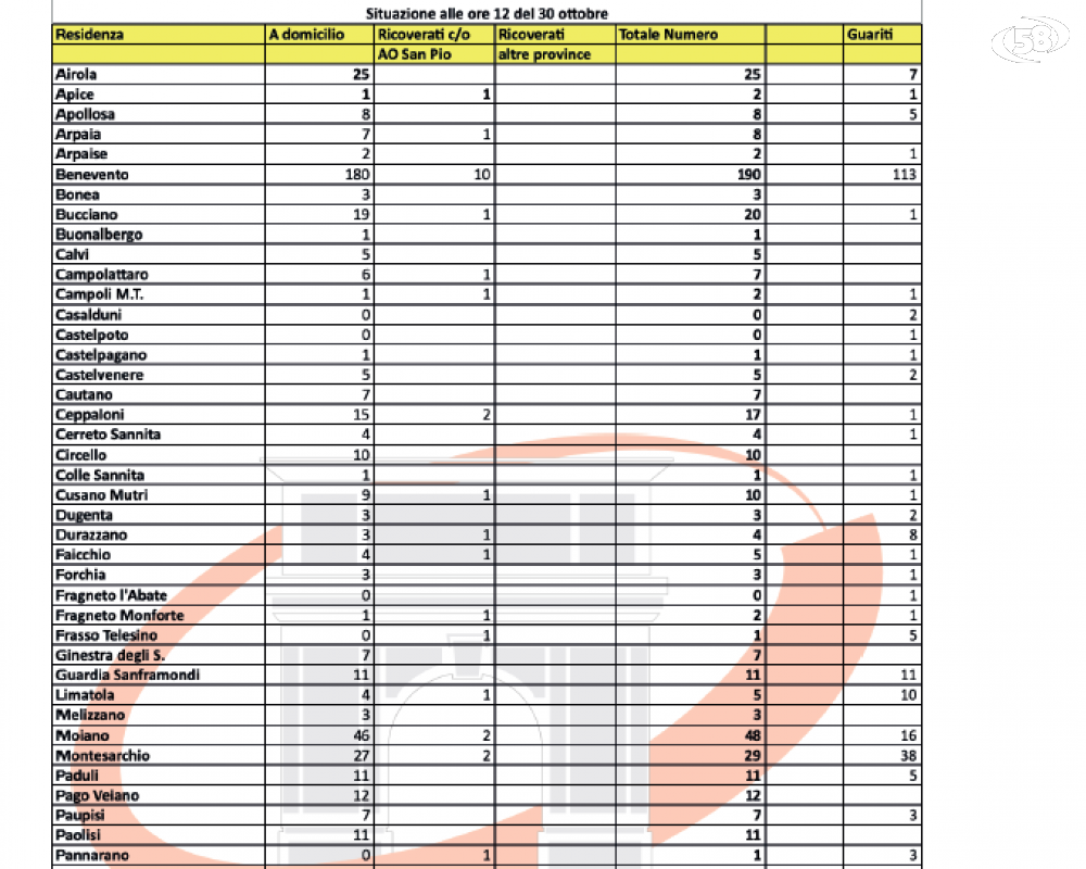 AGGIORNAMENTO BOLLETTINO ASL. I comuni più colpiti dall’ondata Covid sono Benevento con 190, un dato destinato a salire.