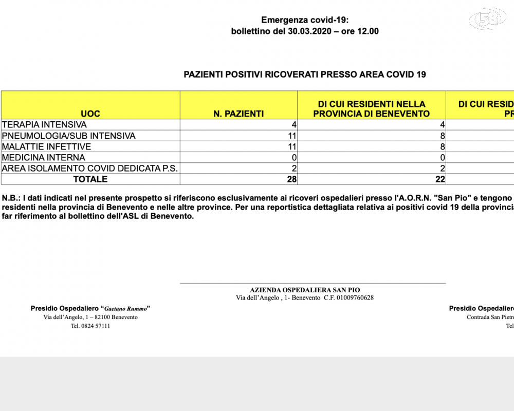 Si attende, intanto, il Bollettino dell'Asl di Benevento per avere il quadro completo dei contagi Covid.