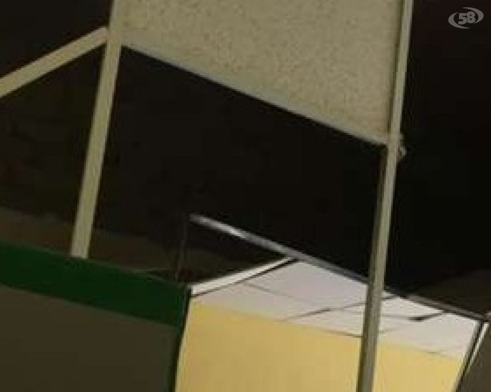 Sono venuti giù i pannelli del contro soffitto di un’aula, il cui peso ha sfondato i vetri di una stanza per fortuna vuota.