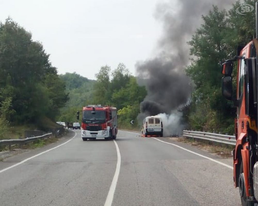 Furgone avvolto dalle fiamme, paura per il conducente e per gli automobilisti in transito.