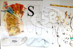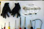 (Ecco alcune foto degli attrezzi, dei fori praticati sulle finestre e della refurtiva recuperata)