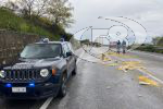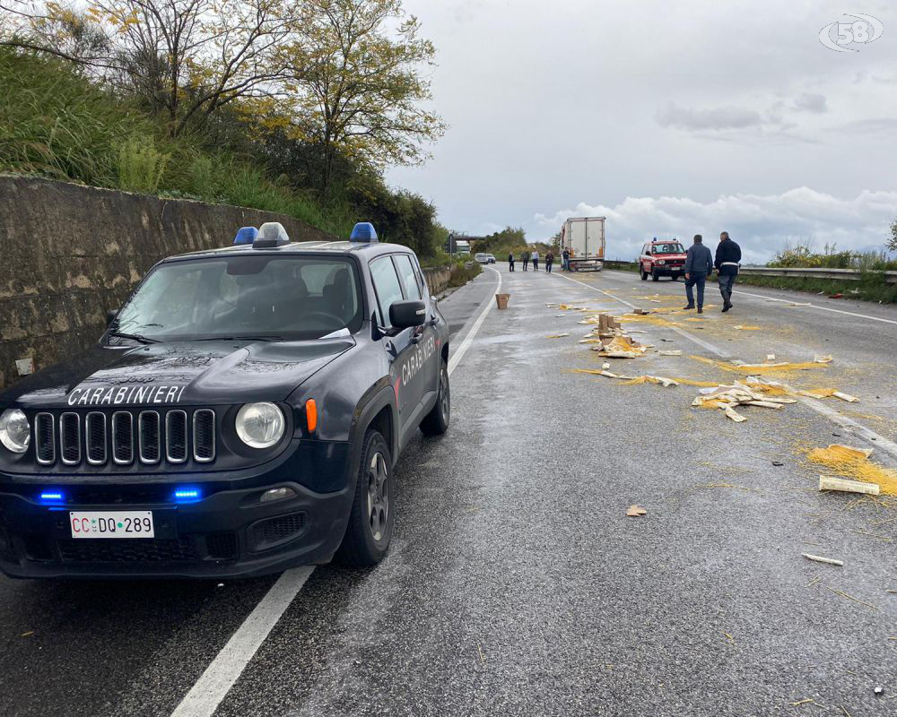 Sul posto i sanitari che hanno prestato le cure del caso, i carabinieri, polizia e i vigili del fuoco che stanno provvedendo a mettere in sicurezza l'arteria invasa da derrate alimentari (pasta).