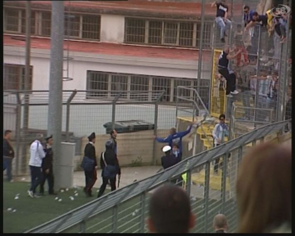 Finale di gara incandescente quello tra Vis Ariano e Cervinara. Dopo il triplice fischio del direttore di gara, inizia la partita a cui nessuno vorrebbe mai assistere. Quando tutto sembra terminare tra le strette di mano dei giocatori, ecco che si scatena la rivolta tra i tifosi. Ad alimentare gli scontri, un magazziniere ospite, fino al 90simo regolarmente a bordo campo ma che dopo la fine del match ha praticamente acceso l'ira dei tifosi. Fitta sassaiola e lancio di oggetti pericolosi da parte degli ultras del Cervo verso la curva arianese. Tensione che si è creata dopo che l'addetto del Cervinara calcio ha sottratto uno striscione storico alla curva arianese, dedicato ad un caro ultra scomparso qualche tempo fa, portandolo ai propri sostenitori che lo hanno incendiato. La polizia ha subito identificato l'autore del gesto. Lo stesso vice questore Vito Cuccovillo, conferma che nonostante il clima incandescente a fine gara, non si registrano feriti ne tra i tifosi e le forze dell'ordine. Una trentina di uomini, tra polizia e carabinieri, hanno garantito la sicurezza evitando che la situazione potesse ulteriormente degenerare.